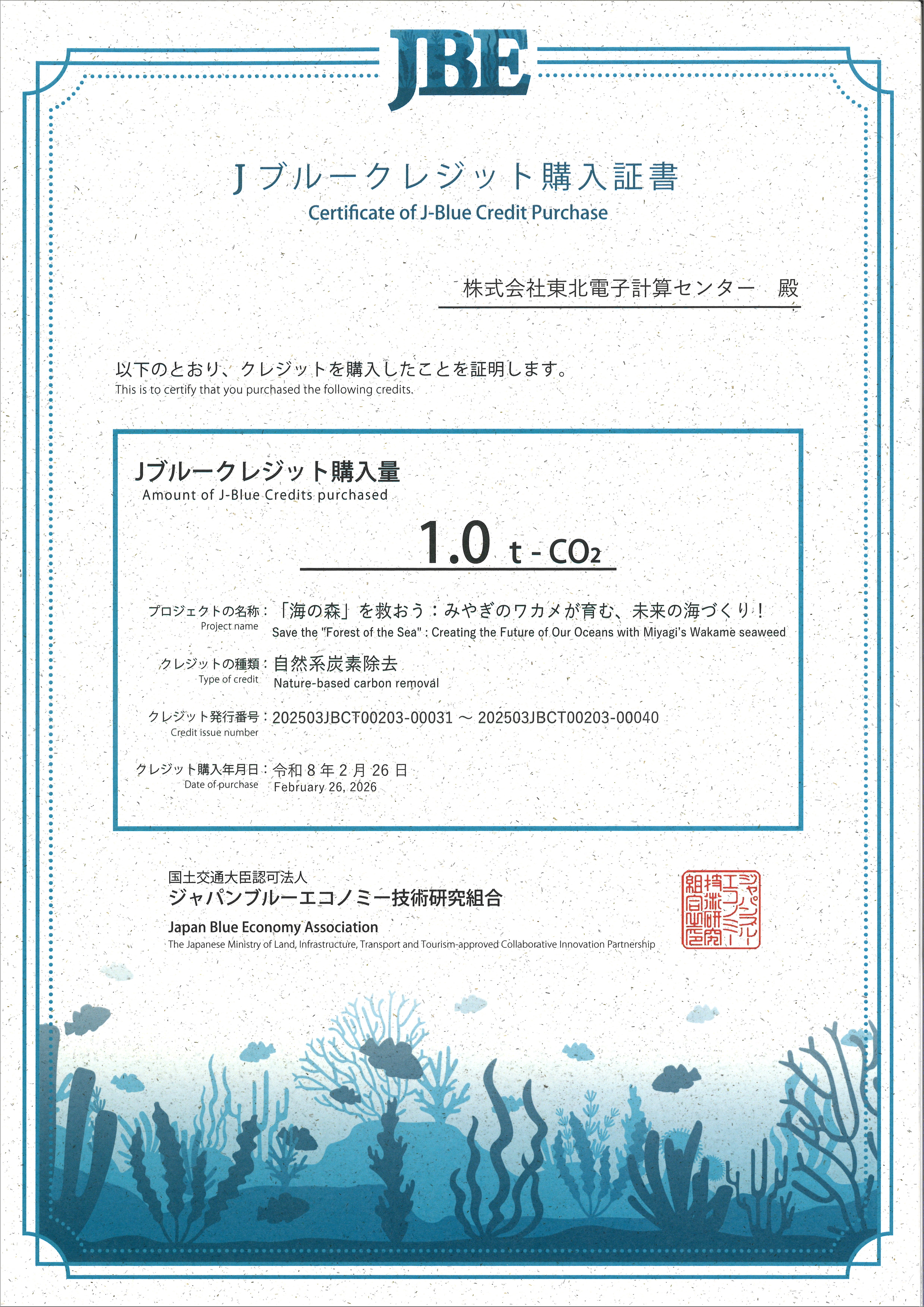 Jブルークレジット購入による環境保全への取り組みについて